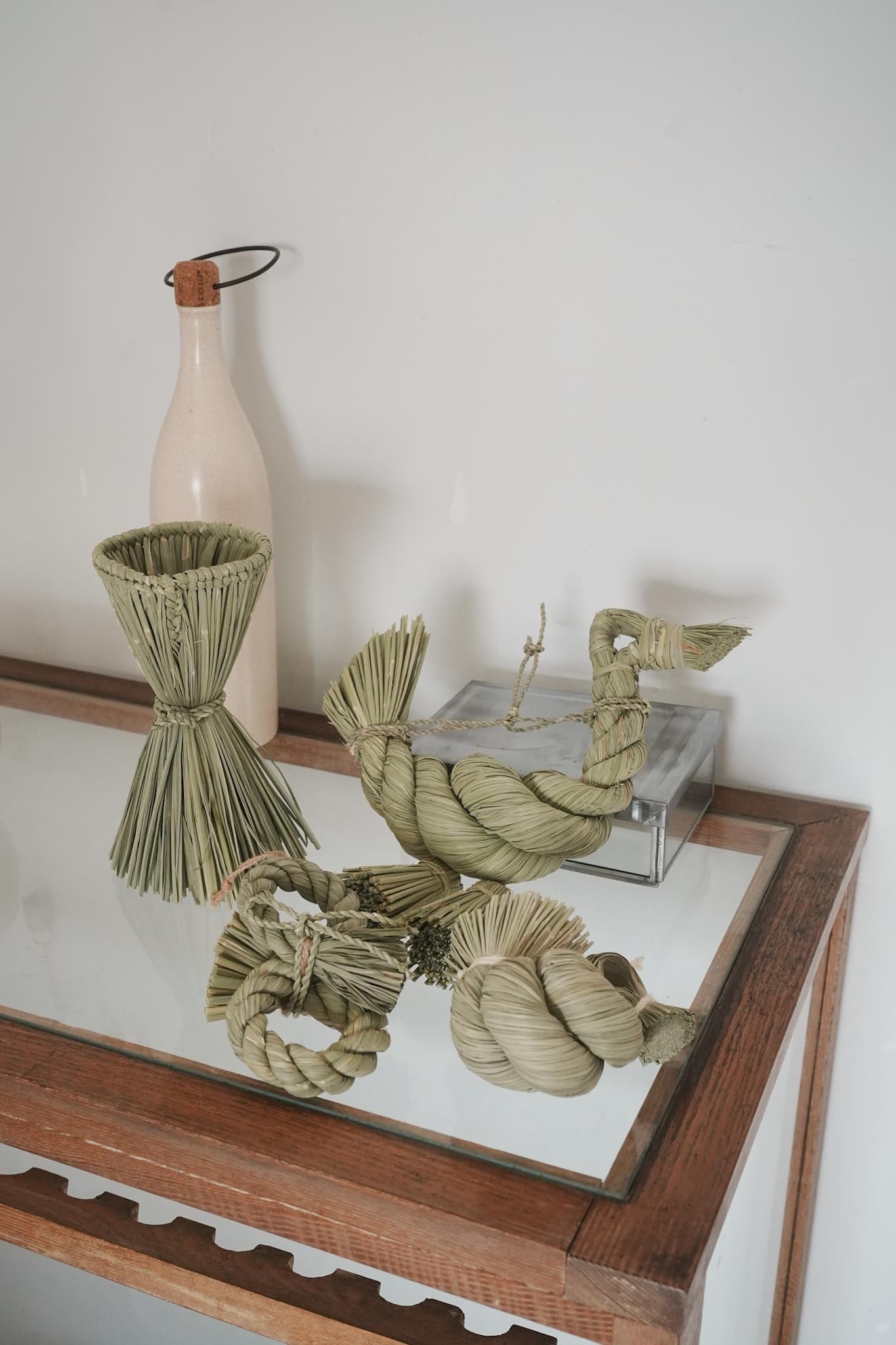 わらは天然素材のため、経年による色や香りの変化があります。また、収穫時期によって形やボリューム、色合いに差異が発生しますが、手づくりならではの温かみをお楽しみください。