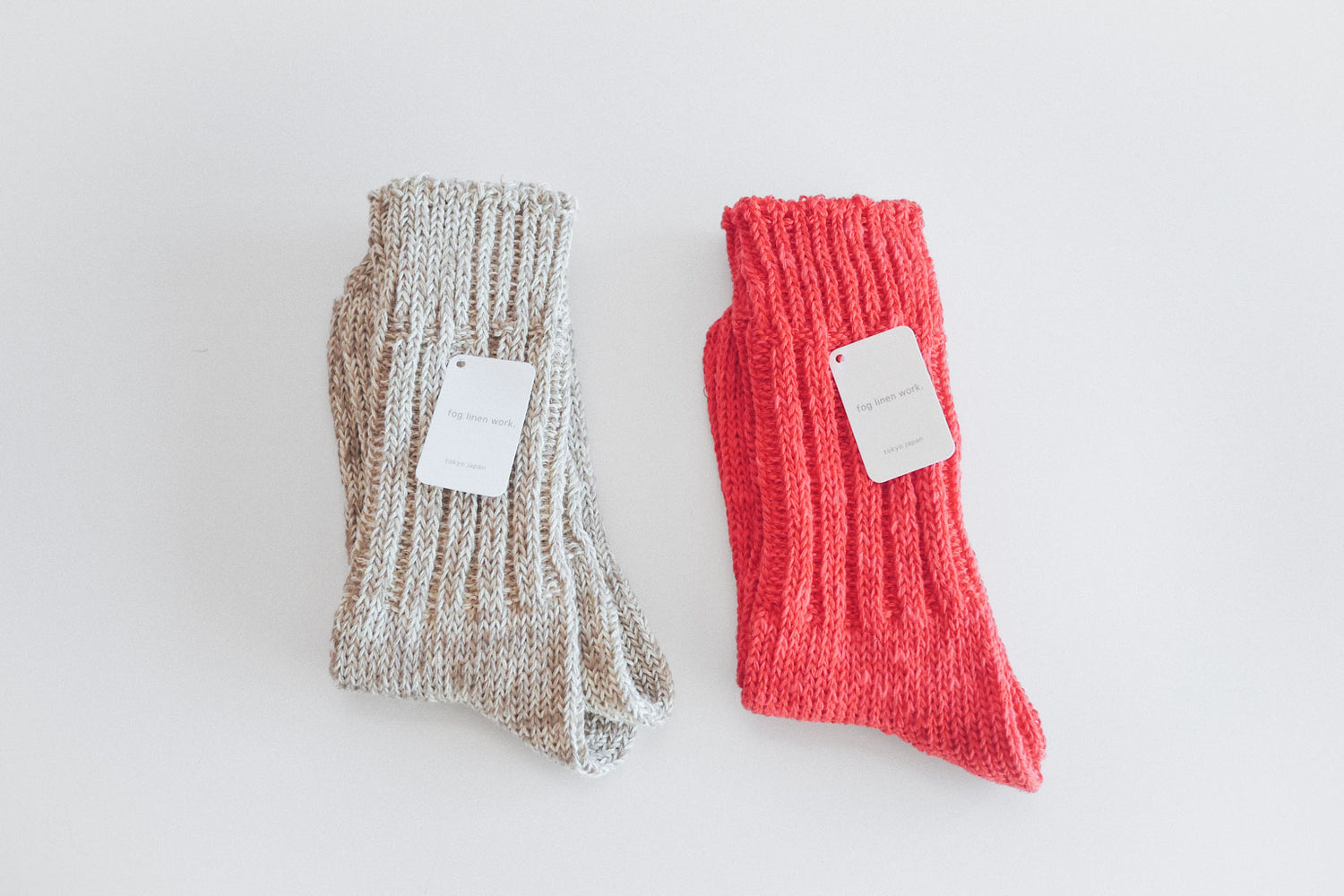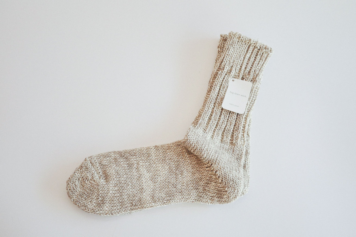 リネンとコットンがブレンドされた糸で編み上げられた優しい色合いのソックス。